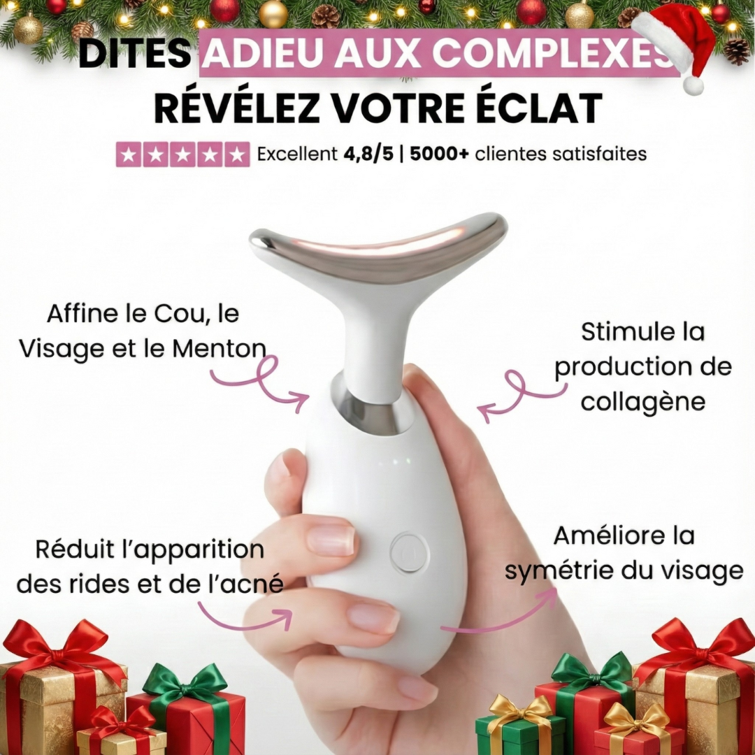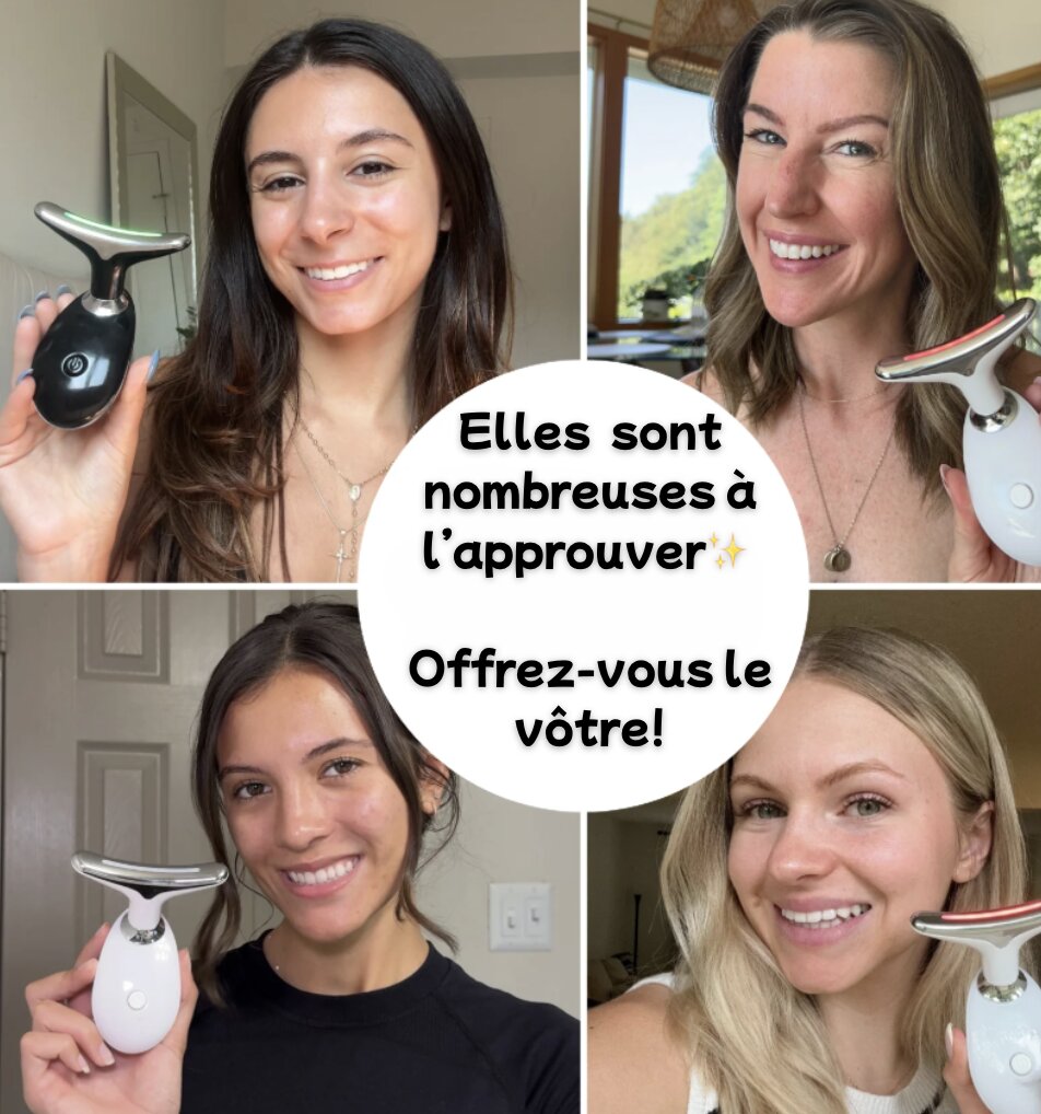 EMS (Stimulation Musculaire Electrique): Envoie de légères impulsions électriques pour tonifier les muscles du cou et du visage, réduisant ainsi le relâchement cutané.